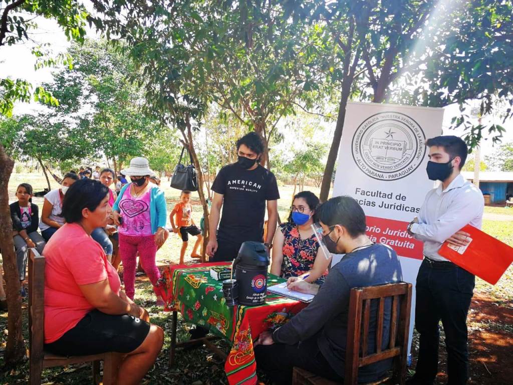 En esta oportunidad, el Consultorio Jurídico es llevado a cabo por los alumnos del 5º curso de la mencionada carrera bajo la tutoria de la Prof. Abg. Brizzy Chequer Davezies , brindan asistencia gratuita en el Asentamiento Km. 15 Acaray - Minga Guazú en el cual están asentadas aproximadamente 200 familias, con diversas situaciones jurídicas