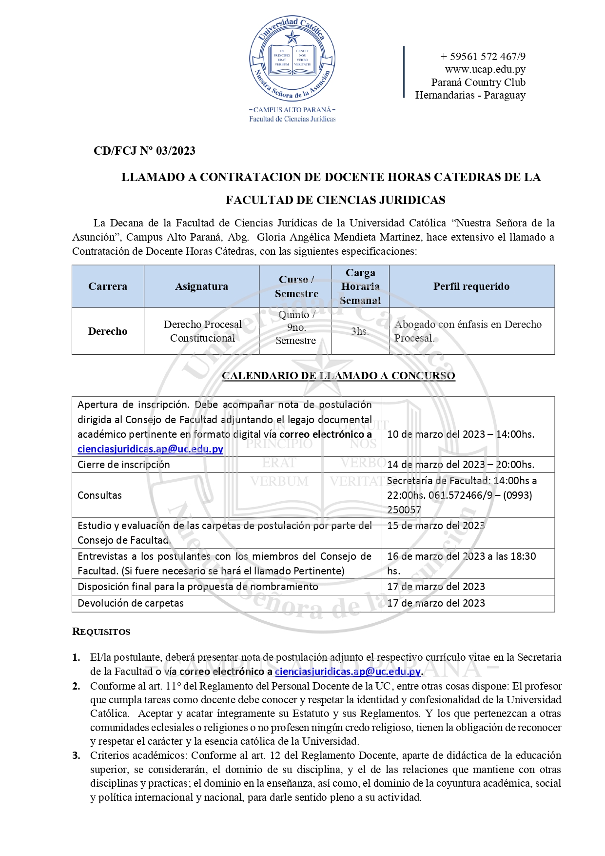 Noticias 10 Marzo 2023 Visto: 1988 Llamado a Docentes Facultad de Ciencias Jurídicas Anterior Siguiente