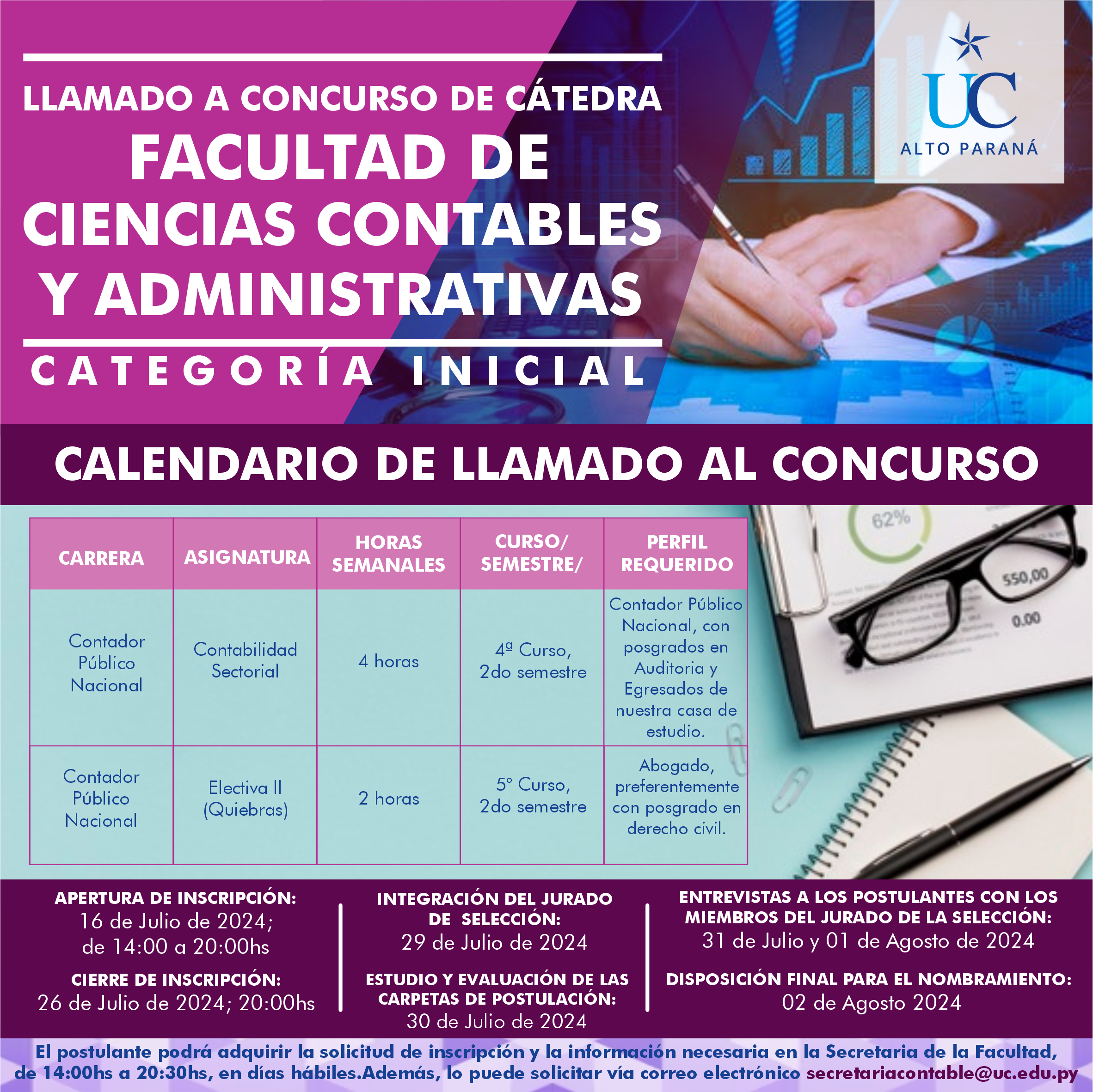 24 Julio 2024 Visto: 1262 Llamado al Concurso de Cátedras - Facultad de Ciencias Contables y Administrativas - Categoría Inicial